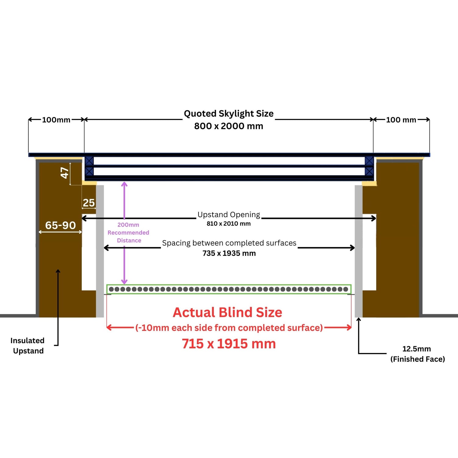 800 x 2000 mm LD Manual Blinds for Flat / Pitched Roof Skylights & Roof Lanterns.