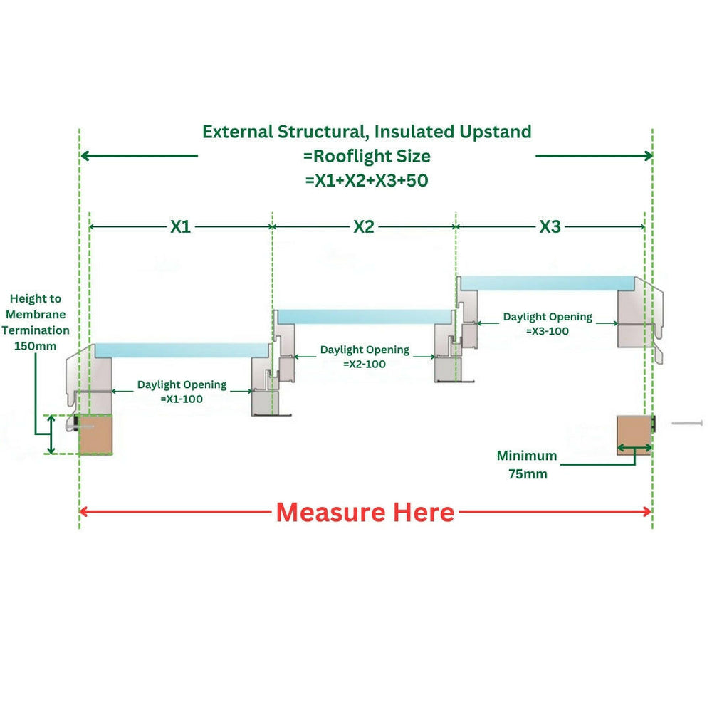 - Bescherming voor bewoners: De binnenruit is gelaagd om personen in het gebouw te beschermen en voldoet aan de industrienormen van de Rooflight Association (voorheen NARM) NTD14.