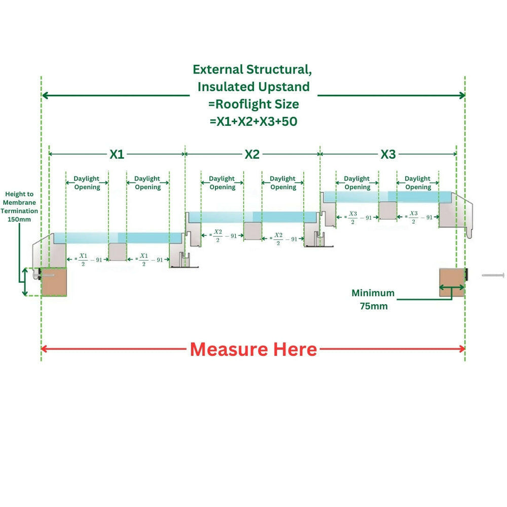 250 x 450 cm Vast modulair daklicht (2 vaste 0 openingen)