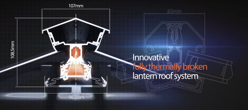 Elk element van de lantaarn is voorzien van een element met een zeer lage geleiding tussen de binnen- en buitenhuid van aluminium, waardoor de warmteoverdracht tot een minimum wordt beperkt.